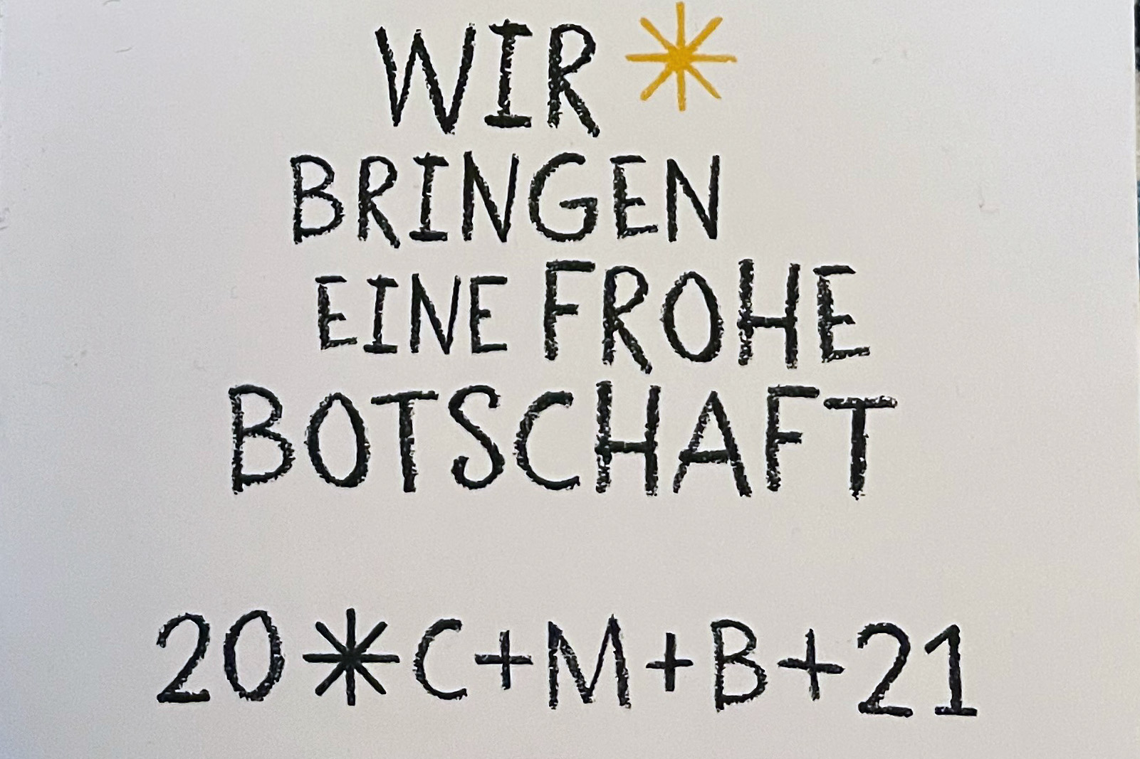 Alle seid gegrüßt, ob dame, ob herr euch zu begrüßen, das freut uns sehr! Die sternsinger stehen als boten davor. Ihr lieben leut’, macht auf das tor, drei königsboten steh’n davor. Die sternsingen kommen, sie ziehen durch's land, sie fassen sich alle an der hand, sie singen und springen, sie tanzen ihr lied. Der segensspruch 20 c+m+b 23 steht für das lateinische christus mansionem benedicat (christus segne dieses haus).